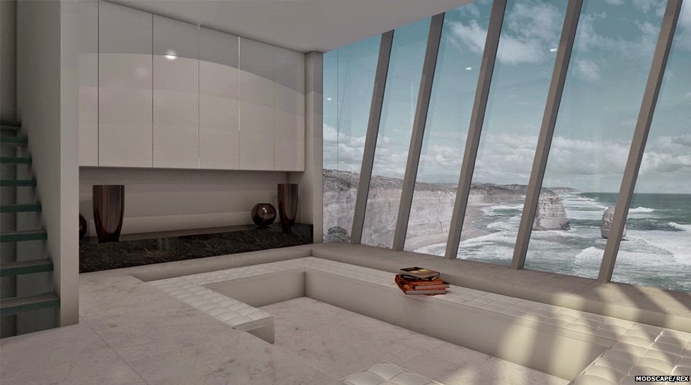 Una casa anclada a una enorme acantilado, de la cual hasta el momento solo existe el concepto. El diseño pertenece a la empresa australiana Modscape ,encargada de diseñao y construir casas prefabricadas.